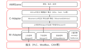 • {ModelName}cDef.cs • 定义车体信号(AsUpperIO、AsLowerIO),重载Init、DriveStop • Movements.cs • 定义“单元动作”的集合,并实现对应的UI测试按钮 • {ModelName}Config.cs • 运动参数 • AGV.cs • 对接调度系统的接口(若干函数)