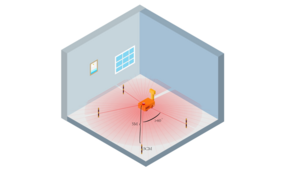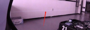 某些激光雷达不提供反射强度信息,可使用暗室和红外相机进行标定。在暗室中,激光雷达扫描到的位置可被红外相机观察到,如图5.1.2-1所示。在图5.1-1中每个柱子等高位置做标记,使用红外相机观察是否每个柱子上的标记被激光同时扫到,若能够同时扫到,则雷达调平。