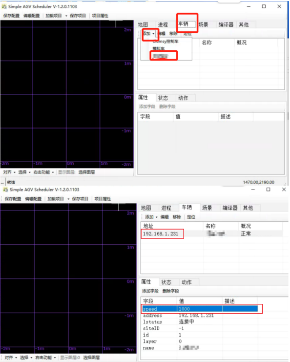 2. 添加小车,双击修改小车IP以及基础速度
