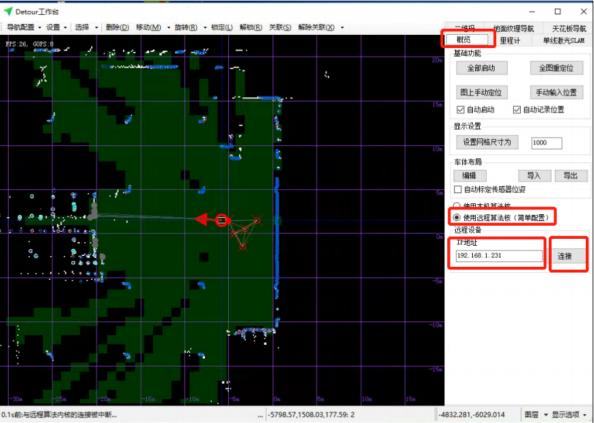 3. 打开Detour软件(自己或服务器电脑桌面上或者MDCS文件夹里),选择概览-使用远程算法核-远程 设备,输入IP 点击连接