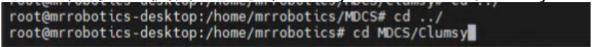 Clumsy 1. 进入ssh,获取root权限,进入小车Clumsy目录 cd MDCS/Clumsy