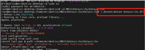 1. 进入ssh,获取root权限,进入 cd MDCS/DetourLite目录