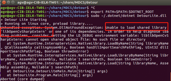 如果打不开Detour可以看下报错 ,可能出现的是,这种情况是libOpenCvSharpExtern.so文件损坏,可以ldd libOpenCvSharpExtern.so看看是否损坏,需要更新或者需要下载对应cpu版本的libOpenCvSharpExtern。