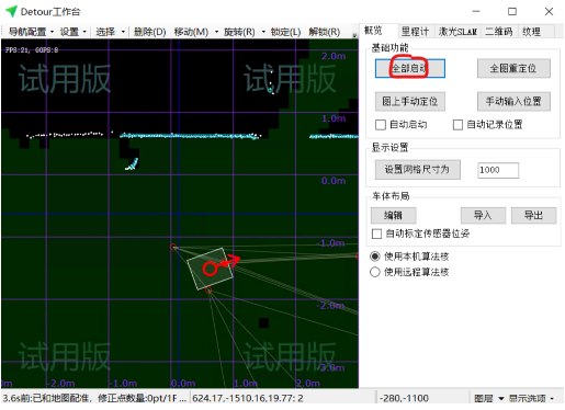 注意:如果在关闭Detour后移动机器人,启动后应使用“全局重定位”或“图上手动定位”来获得初始位姿。
