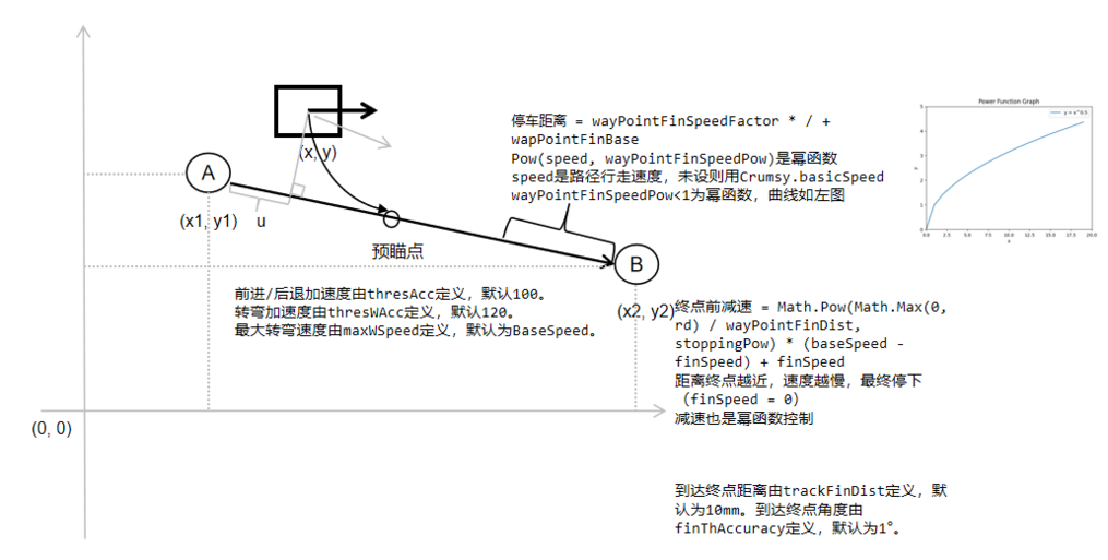 - wapPointFinSpeedPow & wayPointFinSpeedFactor,进入停车距离的减速参数。前者是幂函数指数,后者是比例系数。与 lookAheadPow & lookAheadFactor 作用相似。