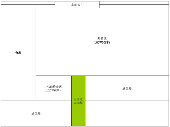 如果AMR 所在环境空旷,则激光雷达则不能观测到周围环境轮廓,进而导致定位失败。图2-2是某工程机械结构件 车间的布局示意图。
