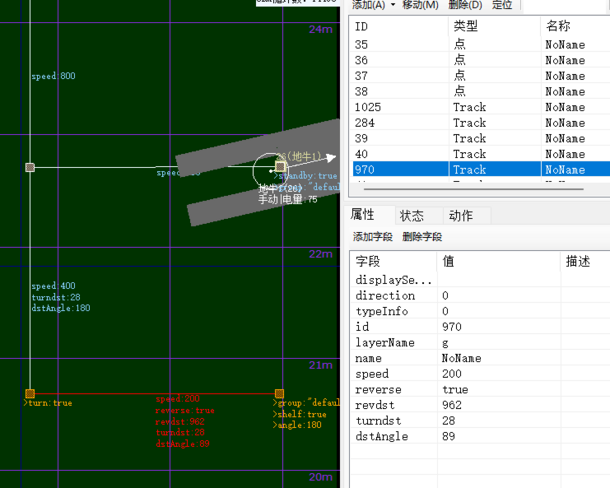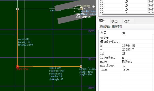 提示:reverse + revdst、turndst + dstAngle 都是配套使用。当地牛从取货站点离开时,是正走,到自旋站点后转向 89 度。
