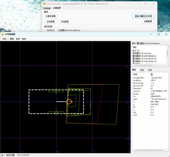 • Clumsy。自动驾驶软件,实现运动控制(行走、旋转、货叉控制等),避障区域(基于激光雷达输出点云)配置,目标识别(通过激光雷达/深度相机识别托盘/货架等),执行上位机下发的任务。车型插件定义移动机器人运动控制相关的信号,比如驱动轮速度、货叉升降控制与高度、SLAM定位置信度等。