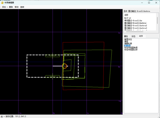 窗口左侧的"对象列表"有两个组件:cart是移动机器人的下位信号,frontlidar是导航雷达。这是调试时主要关注的对象。